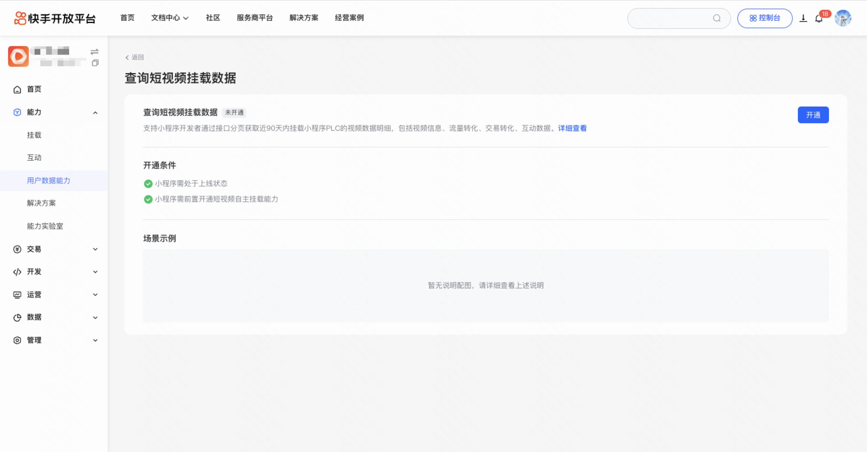 注意:若调用接口提示无查询权限,请前往开发者后台 能力-用户数据能力 ,开通:查询短视频挂载数据能力